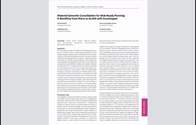 Muyun Xiao, Shangde Gao, Changjie Chen, Karla Saldana Ochoa. “Material-Semantic Consolidation for Web-Ready Planning: A Workflow from Rhino to ArGIS with Grasshopper” ACSA 2026